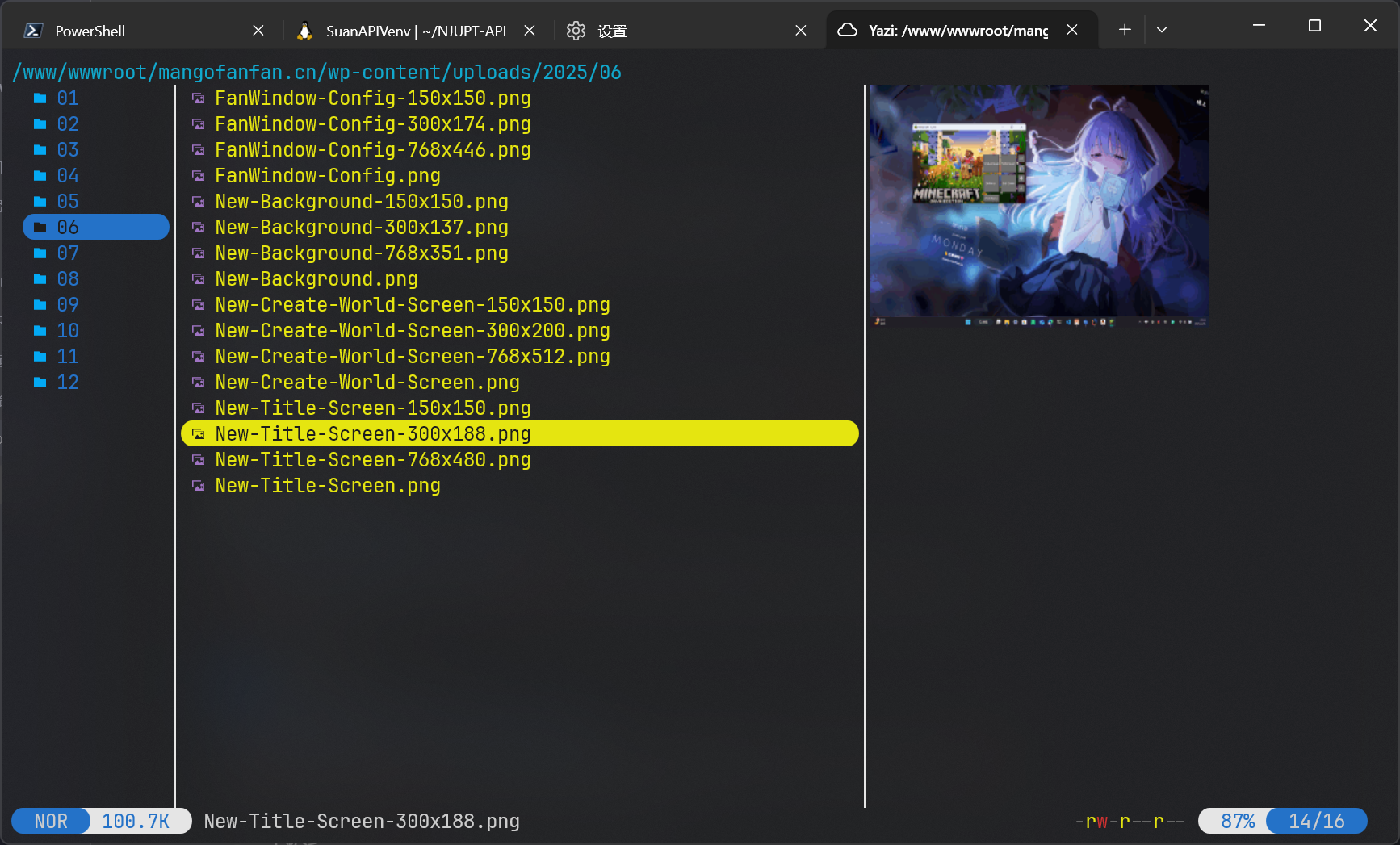 顺便一提,使用 y (需要提前配置 shell 的配置文件)可以让 yazi 退出时保留在退出时的目录位置,相当于自动帮你 cd 到退出 yazi 的目录,方便你工作之类的。